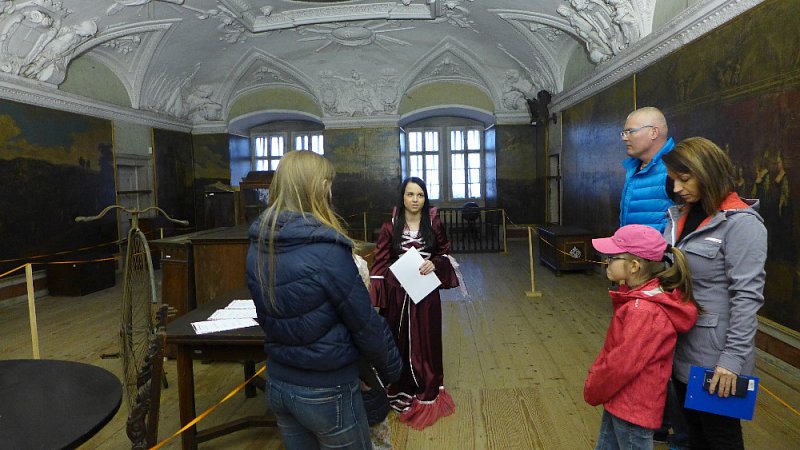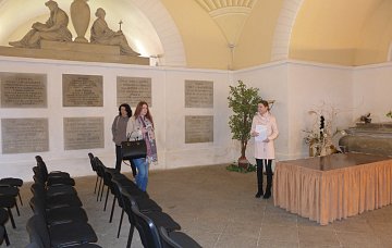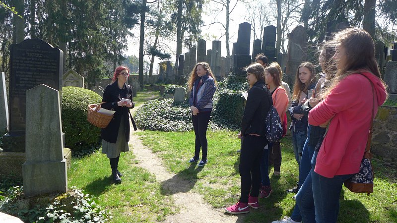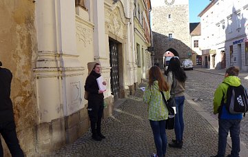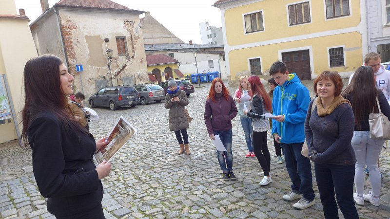 Praktické maturitní zkoušky CR4 již začaly včera 20.dubna 2016. První den studenti průvodcovali v Třebíči, dnes je čeká Brtnice a Jihlava, v pátek zase Náměšť nad Oslavou. Druhý den praktických maturitních zkoušek probíhal v Jihlavě a Brtnici. Společně jsme kráčeli po stopách stříbra, podívali se na místa, kde sídlili konšelé, dle v muzeích vystavených vysvědčení zjistili, že Gustav Mahler ani Josef Hoffmann nebyli příliš vzorní studenti, a také jsme si prošli kulturní promenádu a navštívili zámek v Brtnici. Třetí den praktických maturitních zkoušek probíhal v Náměšti nad Oslavou a na židovském hřbitově v Třebíči, kde jsme dostali Hamanovy uši . V pondělí 25.4.2016 se průvodcovalo kromě češtiny také v anglickém jazyce. Bára, Lenka i Denisa předvedly velmi dobrou znalost anglického jazyka i zásad průvodcování. Karel se ve "stínadlech" pohyboval jako Rychlonožka, Dáša nás v rozvážném tempu provedla synagogou a Nikol úspěšně zvládla hordu turistů v domě Seligmana Bauera.