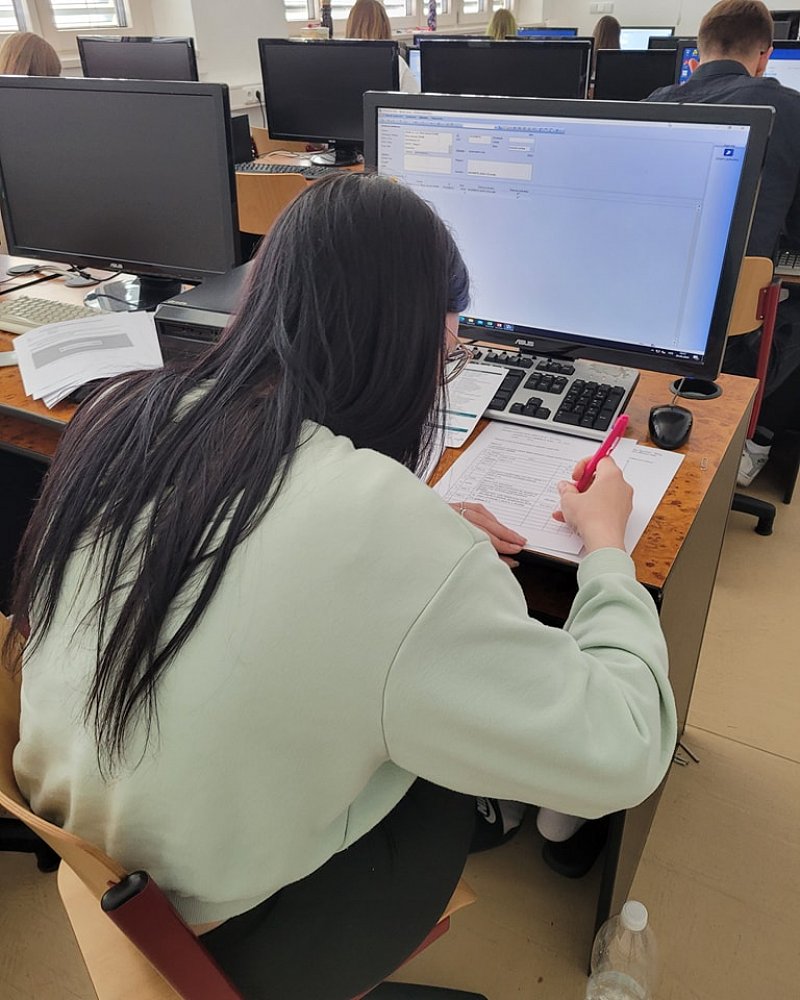 Praktická maturitní zkouška oborů obchodní akademie a podnikání, kde si ověřovali své znalosti v počítání, účtování, vytváření databází nebo propagačních materiálů.